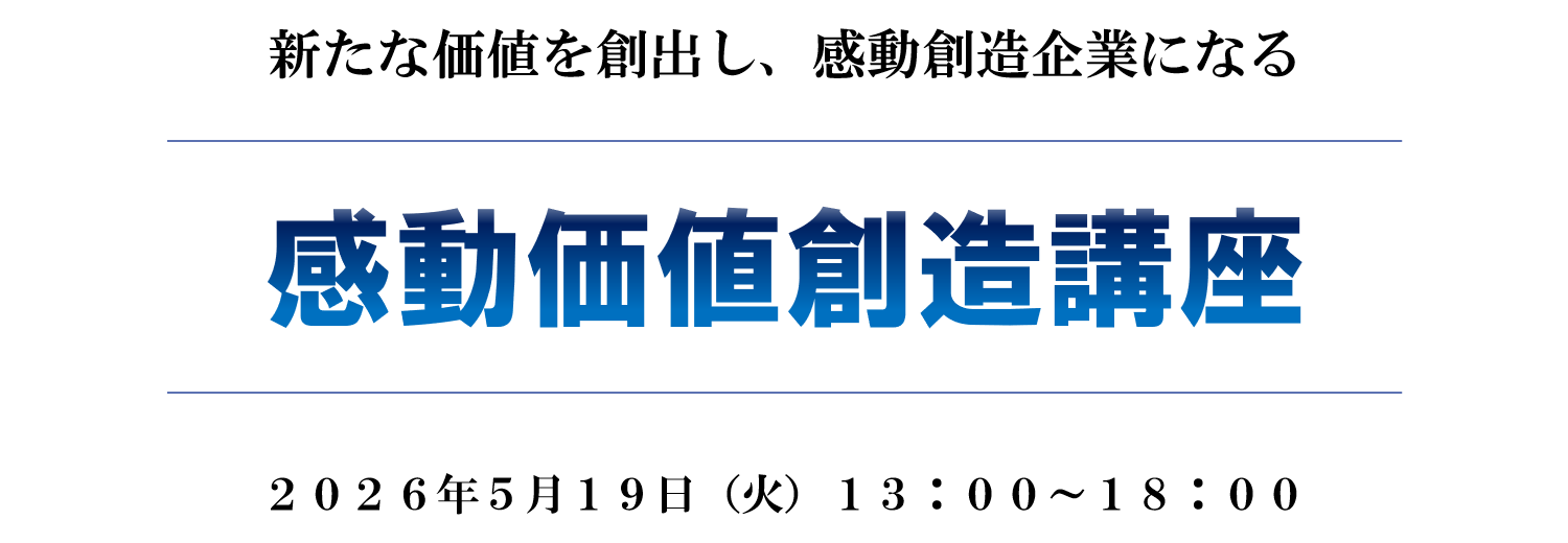 本講座は、お客様に感動を与える新たな価値を創造するノウハウを多くの事例と共に学び、既存事業や新規事業の魅力を高めるための講座です。新たな価値を生み出す発想法から、創造的姿勢、感動価値の創造のポイント、価値を現実にする戦略的思考にいたるまで、新しい価値を創造するために必要なノウハウを習得することができます。